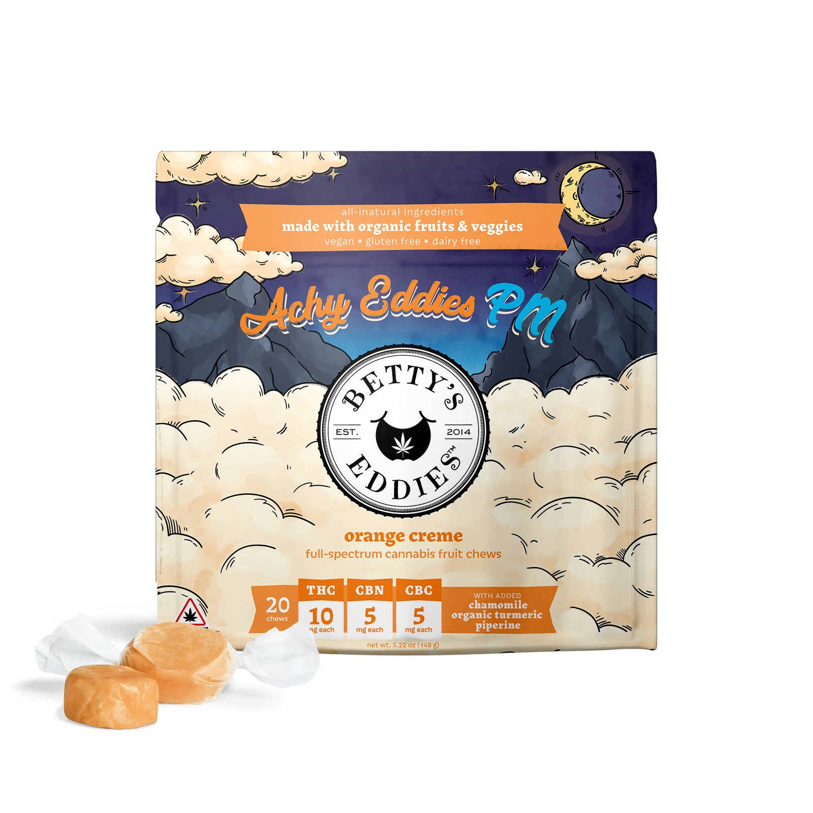 Betty's Eddies | Achy Eddie's PM Orange Creme Fruit Chews 200mg