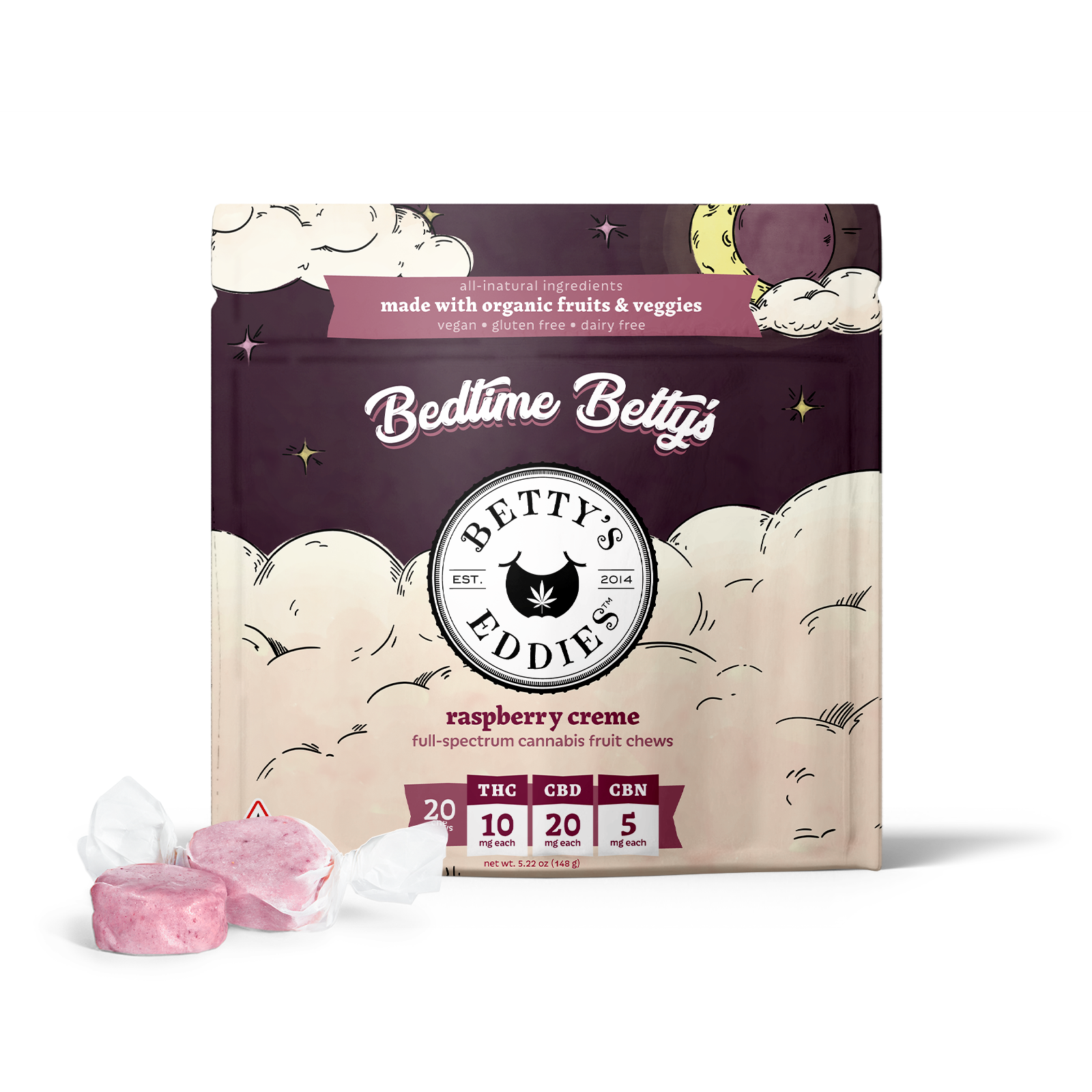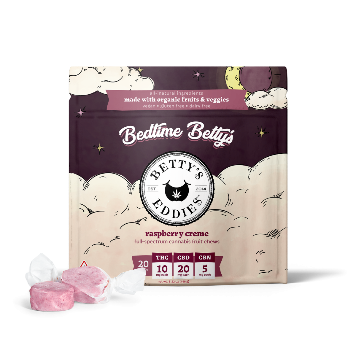 Betty's Eddies | Bedtime Betty's Raspberry Creme Fruit Chews 200mg