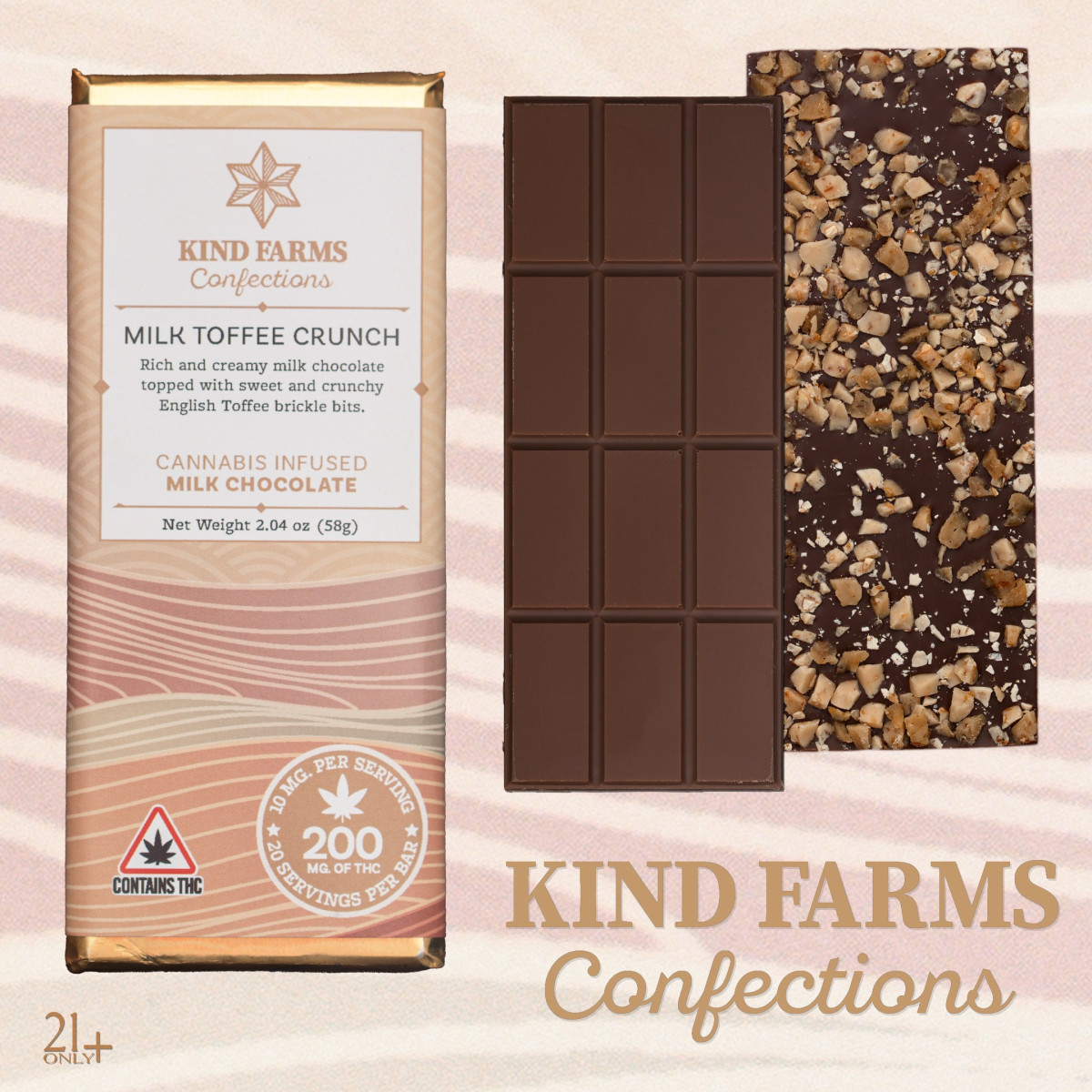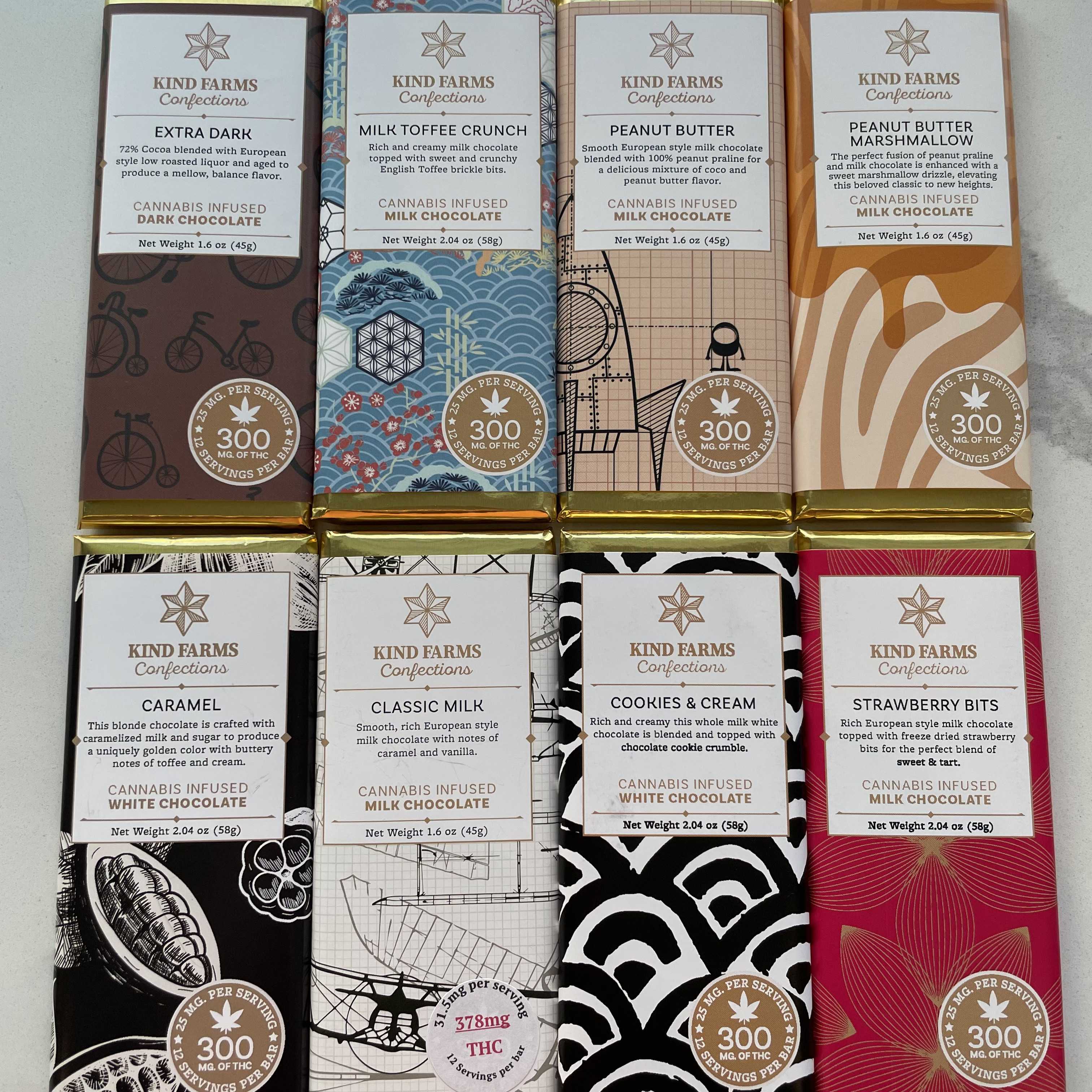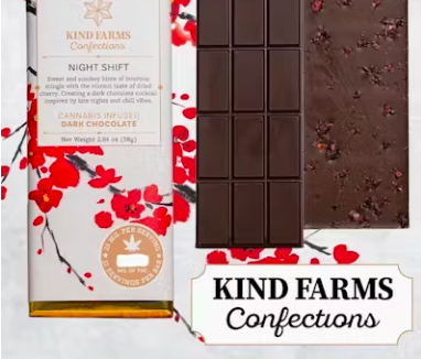 A few products consistently show up across the most locations. Kind Farms | Chem 1 3.5g (5 stores), Kind Farms | Ice Cream Sundae 3.5g (5 stores), and Kind Farms | Dark Mint Chocolate Bar 200mg (5 stores).